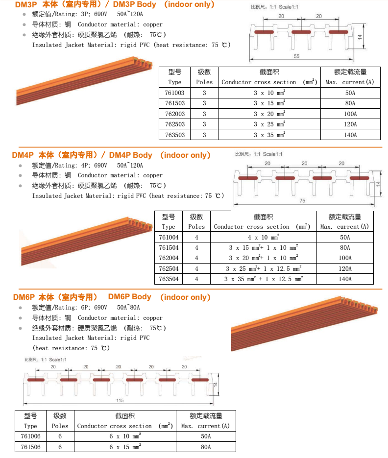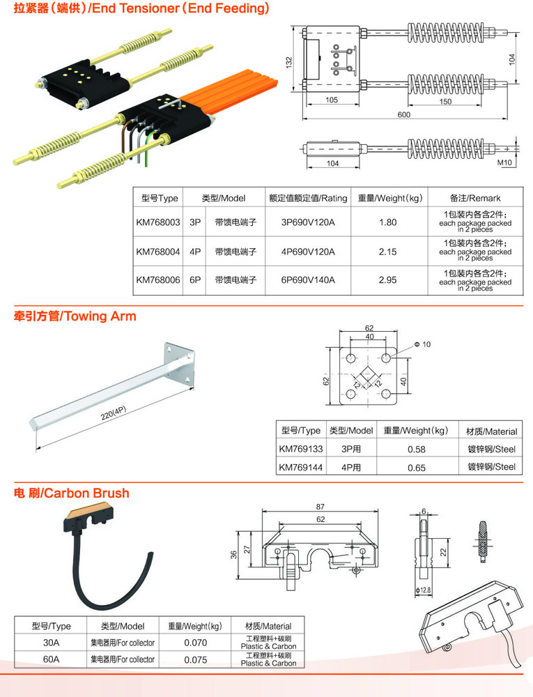DMWJF型無(wú)接縫安全滑觸線結(jié)構(gòu)由PVC塑料板與銅片構(gòu)成,其主要有三級(jí)、四級(jí)、六級(jí)等三個(gè)種類。 DMWJF型無(wú)接縫滑觸線主要配件有一字型支架、提掛架、集電器、中間供電器、拉緊器、集電器支架等配件。德瑪牌無(wú)接縫滑觸線導(dǎo)體材料采用T2紫銅,增加導(dǎo)體導(dǎo)電性能,外殼為PVC加碳酸鈣粉材料,增加其柔韌性及其硬度,保證其使用壽命。 無(wú)接縫滑觸線主要應(yīng)用在自動(dòng)化設(shè)備、立體車庫(kù)、車間流水線、起重設(shè)備供電等相關(guān)行業(yè),無(wú)接縫滑觸線要求軌道運(yùn)行長(zhǎng)度最好不要超過(guò)100米,運(yùn)行速度每分鐘不能超過(guò)200米。